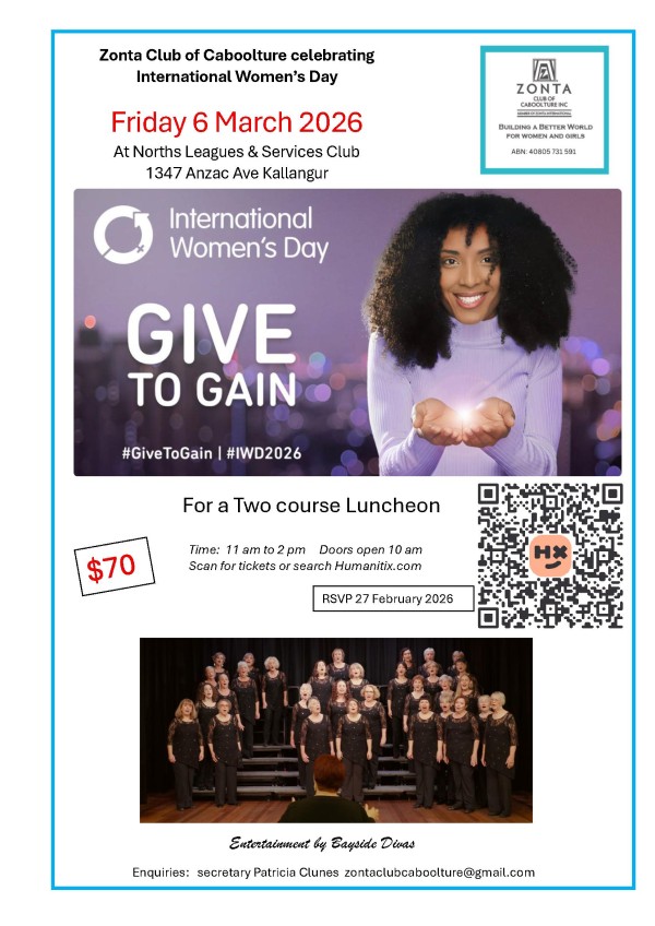 Zonta Club of Caboolture runs events for a variety of reasons. Our events aim to increase awareness and advocate for women and girls in our community. They are opportunities to celebrate women in our community and raise funds to support local service projects.